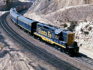The Santa Fe from the 50s to the end in the 1993 era. Lots of passenger F-unit trains and freight with many paint colors. See the speedy “Super-C” freights that redefined the rail-freight industry - as it was run like a premium express passenger train.