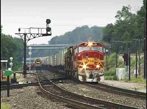Norfolk Southern's ex Wabash Route is explained and many trains show up from them in this movie. Union Pacific and Burlington Northern also both make their presence felt, with fine examples of big power on heavy coal and drag freights! The route of the Kansas City Southern is mapped out, and we see some road freights and locals from them as well!